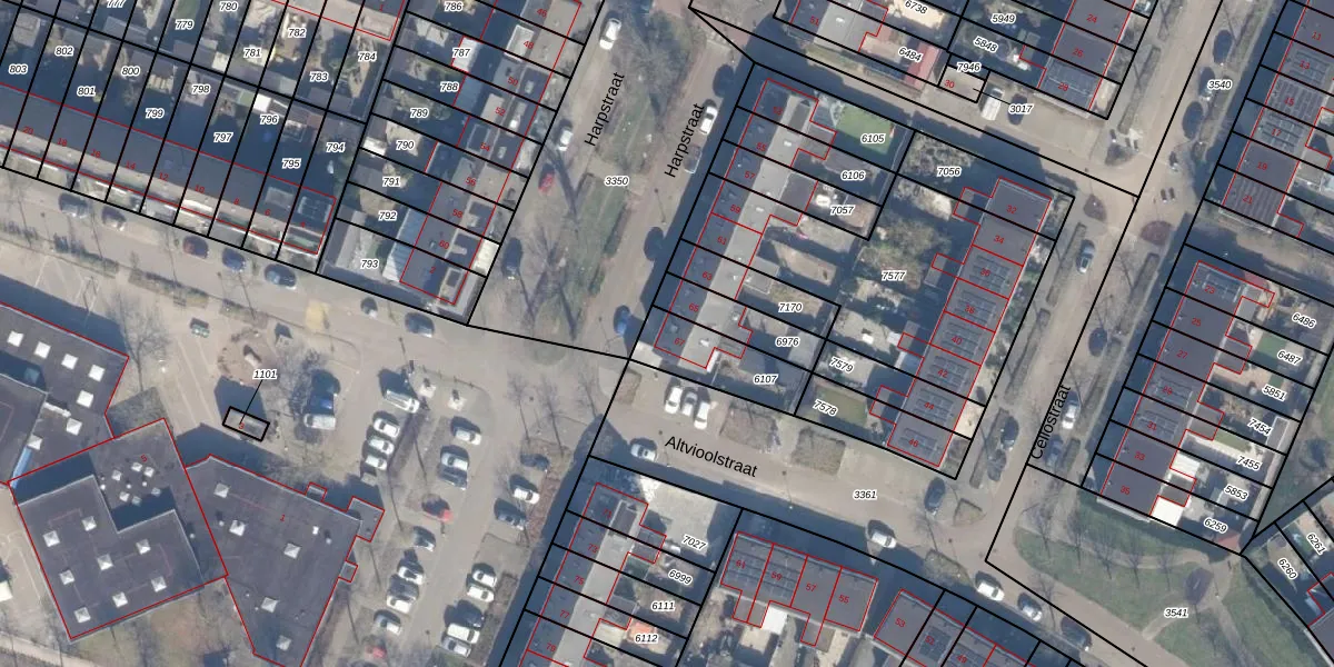 Het perceel waarop Harpstraat 67 staat heeft een oppervlakte van 206 m². Dit is een middelgroot perceel. De perceeloppervlakte wordt geregistreerd door het Kadaster. Gedetailleerde informatie over de maten van dit perceel kunt u vinden in het rapport Kadastrale kaart met maatvoering van Harpstraat 67.