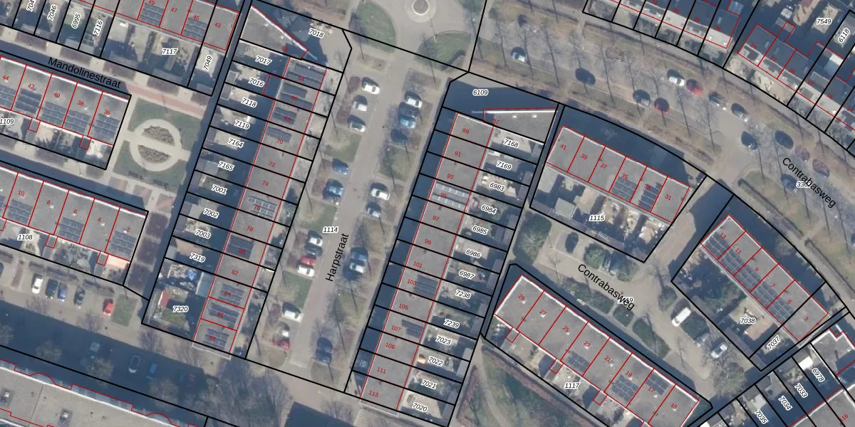 Harpstraat 97 is gelegen op kadastraal perceel AMR04Q6985. Deze kadastrale aanduiding is uniek en wordt gebruikt door het Kadaster om eigendomsrechten en andere zakelijke rechten vast te leggen. Het perceel maakt onderdeel uit van de kadastrale gemeente Almere.