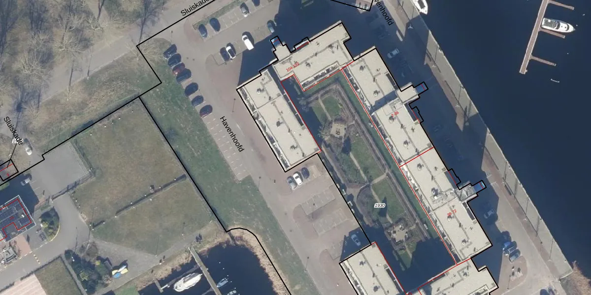 Het perceel waarop Havenhoofd 108 staat heeft een oppervlakte van 4417 m². Dit is een zeer groot perceel. De perceeloppervlakte wordt geregistreerd door het Kadaster. Gedetailleerde informatie over de maten van dit perceel kunt u vinden in het rapport Kadastrale kaart met maatvoering van Havenhoofd 108.