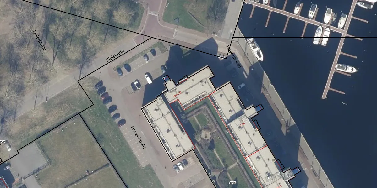 Het perceel waarop Havenhoofd 126 staat heeft een oppervlakte van 4417 m². Dit is een zeer groot perceel. De perceeloppervlakte wordt geregistreerd door het Kadaster. Gedetailleerde informatie over de maten van dit perceel kunt u vinden in het rapport Kadastrale kaart met maatvoering van Havenhoofd 126.