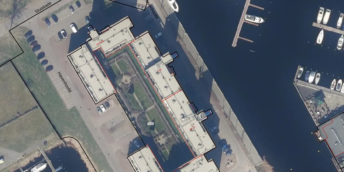 Het perceel waarop Havenhoofd 16 staat heeft een oppervlakte van 4417 m². Dit is een zeer groot perceel. De perceeloppervlakte wordt geregistreerd door het Kadaster. Gedetailleerde informatie over de maten van dit perceel kunt u vinden in het rapport Kadastrale kaart met maatvoering van Havenhoofd 16.