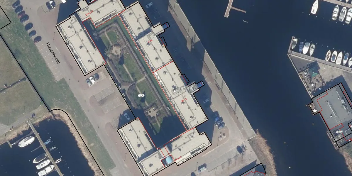 Het perceel waarop Havenhoofd 54 staat heeft een oppervlakte van 4417 m². Dit is een zeer groot perceel. De perceeloppervlakte wordt geregistreerd door het Kadaster. Gedetailleerde informatie over de maten van dit perceel kunt u vinden in het rapport Kadastrale kaart met maatvoering van Havenhoofd 54.