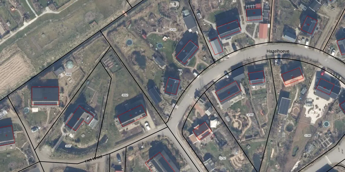 Het perceel waarop Hazelhoeve 5 staat heeft een oppervlakte van 3353 m². Dit is een zeer groot perceel. De perceeloppervlakte wordt geregistreerd door het Kadaster. Gedetailleerde informatie over de maten van dit perceel kunt u vinden in het rapport Kadastrale kaart met maatvoering van Hazelhoeve 5.
