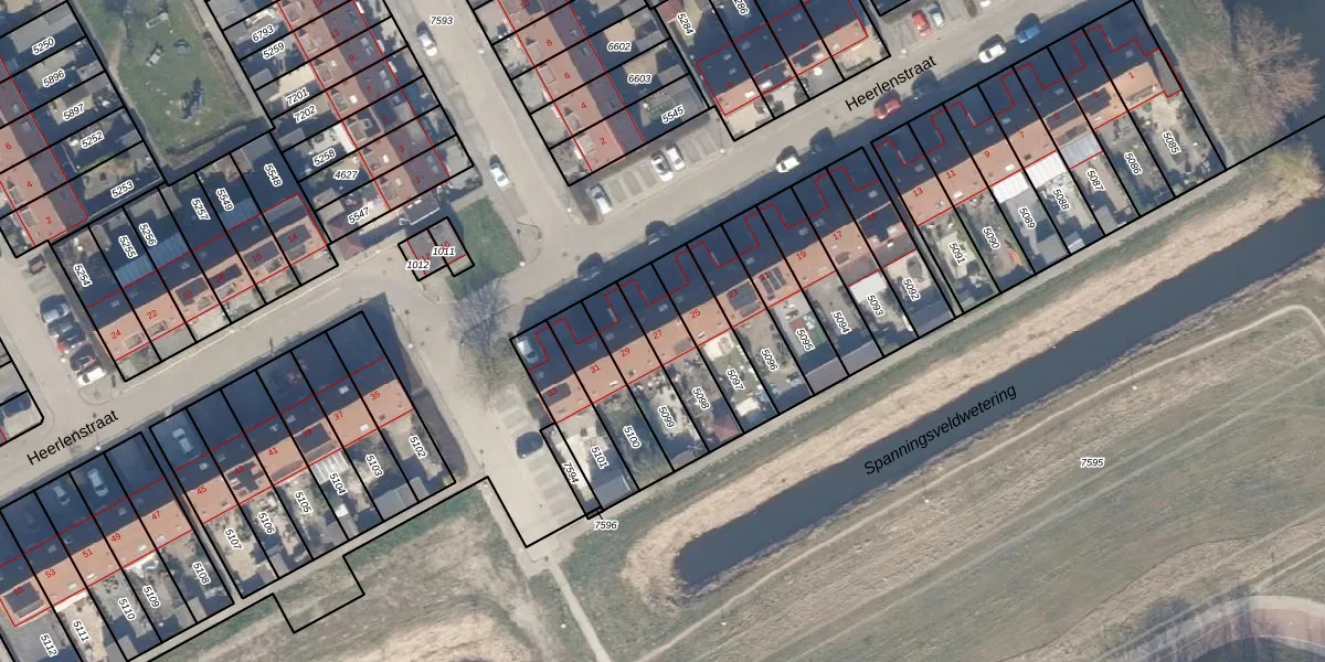 Het perceel waarop Heerlenstraat 27 staat heeft een oppervlakte van 176 m². Dit is een middelgroot perceel. De perceeloppervlakte wordt geregistreerd door het Kadaster. Gedetailleerde informatie over de maten van dit perceel kunt u vinden in het rapport Kadastrale kaart met maatvoering van Heerlenstraat 27.