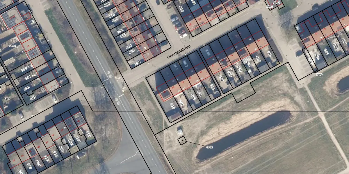 Heerlenstraat 53 is gelegen op kadastraal perceel AMR04K5111. Deze kadastrale aanduiding is uniek en wordt gebruikt door het Kadaster om eigendomsrechten en andere zakelijke rechten vast te leggen. Het perceel maakt onderdeel uit van de kadastrale gemeente Almere.