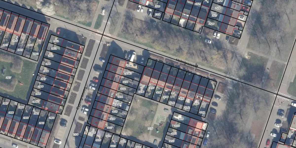 Gebruik de zoekbalk of klik op een perceel voor informatie over de adressen binnen dit perceel.