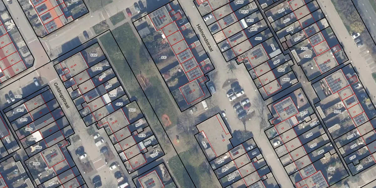 Het perceel waarop Helmondstraat 19 staat heeft een oppervlakte van 1355 m². Dit is een zeer groot perceel. De perceeloppervlakte wordt geregistreerd door het Kadaster. Gedetailleerde informatie over de maten van dit perceel kunt u vinden in het rapport Kadastrale kaart met maatvoering van Helmondstraat 19.