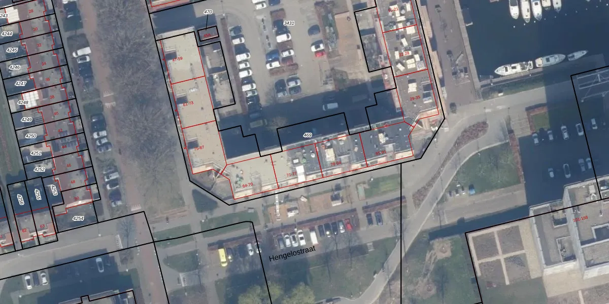 Hengelostraat 76 is gelegen op kadastraal perceel AMR04K469. Deze kadastrale aanduiding is uniek en wordt gebruikt door het Kadaster om eigendomsrechten en andere zakelijke rechten vast te leggen. Het perceel maakt onderdeel uit van de kadastrale gemeente Almere.