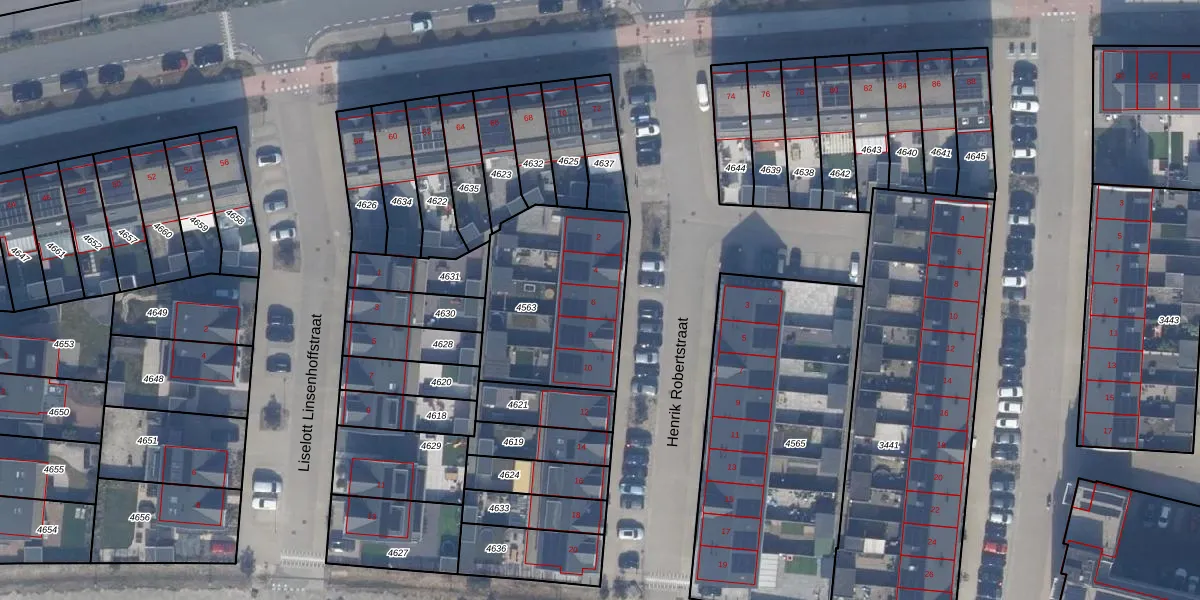 Het perceel waarop Henrik Robertstraat 6 staat heeft een oppervlakte van 672 m². Dit is een groot perceel. De perceeloppervlakte wordt geregistreerd door het Kadaster. Gedetailleerde informatie over de maten van dit perceel kunt u vinden in het rapport Kadastrale kaart met maatvoering van Henrik Robertstraat 6.