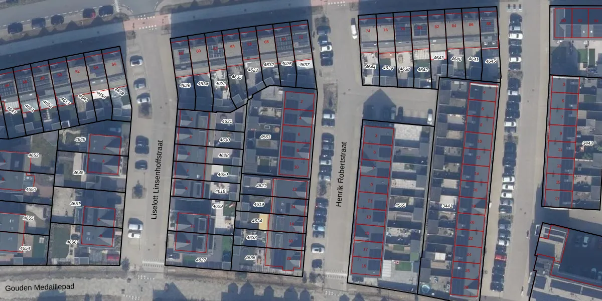 Het perceel waarop Henrik Robertstraat 8 staat heeft een oppervlakte van 672 m². Dit is een groot perceel. De perceeloppervlakte wordt geregistreerd door het Kadaster. Gedetailleerde informatie over de maten van dit perceel kunt u vinden in het rapport Kadastrale kaart met maatvoering van Henrik Robertstraat 8.