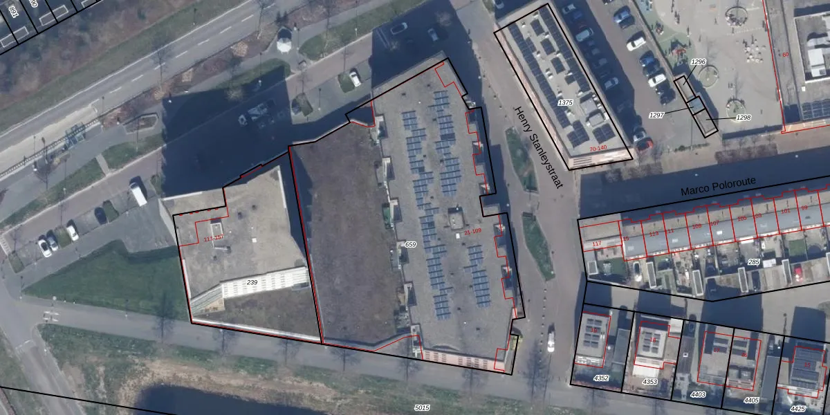 Het perceel waarop Henry Stanleystraat 69 staat heeft een oppervlakte van 2985 m². Dit is een zeer groot perceel. De perceeloppervlakte wordt geregistreerd door het Kadaster. Gedetailleerde informatie over de maten van dit perceel kunt u vinden in het rapport Kadastrale kaart met maatvoering van Henry Stanleystraat 69.