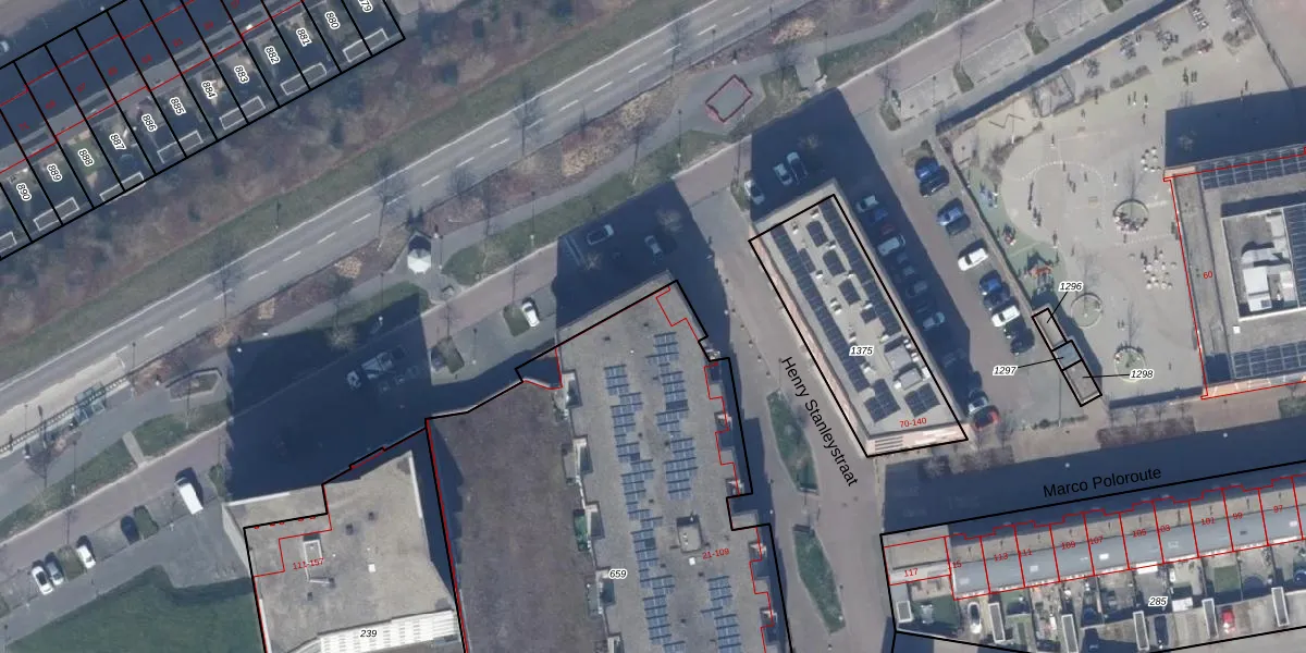 Het perceel waarop Henry Stanleystraat 89 staat heeft een oppervlakte van 2985 m². Dit is een zeer groot perceel. De perceeloppervlakte wordt geregistreerd door het Kadaster. Gedetailleerde informatie over de maten van dit perceel kunt u vinden in het rapport Kadastrale kaart met maatvoering van Henry Stanleystraat 89.