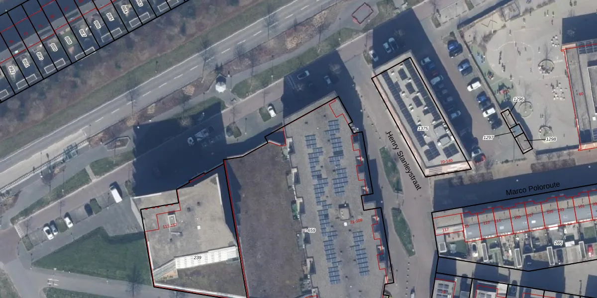 Het perceel waarop Henry Stanleystraat 91 staat heeft een oppervlakte van 2985 m². Dit is een zeer groot perceel. De perceeloppervlakte wordt geregistreerd door het Kadaster. Gedetailleerde informatie over de maten van dit perceel kunt u vinden in het rapport Kadastrale kaart met maatvoering van Henry Stanleystraat 91.