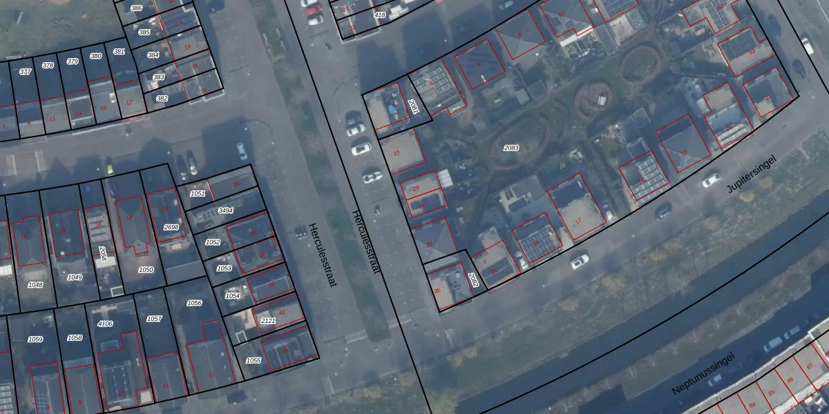 Het perceel waarop Herculesstraat 31 staat heeft een oppervlakte van 5095 m². Dit is een zeer groot perceel. De perceeloppervlakte wordt geregistreerd door het Kadaster. Gedetailleerde informatie over de maten van dit perceel kunt u vinden in het rapport Kadastrale kaart met maatvoering van Herculesstraat 31.