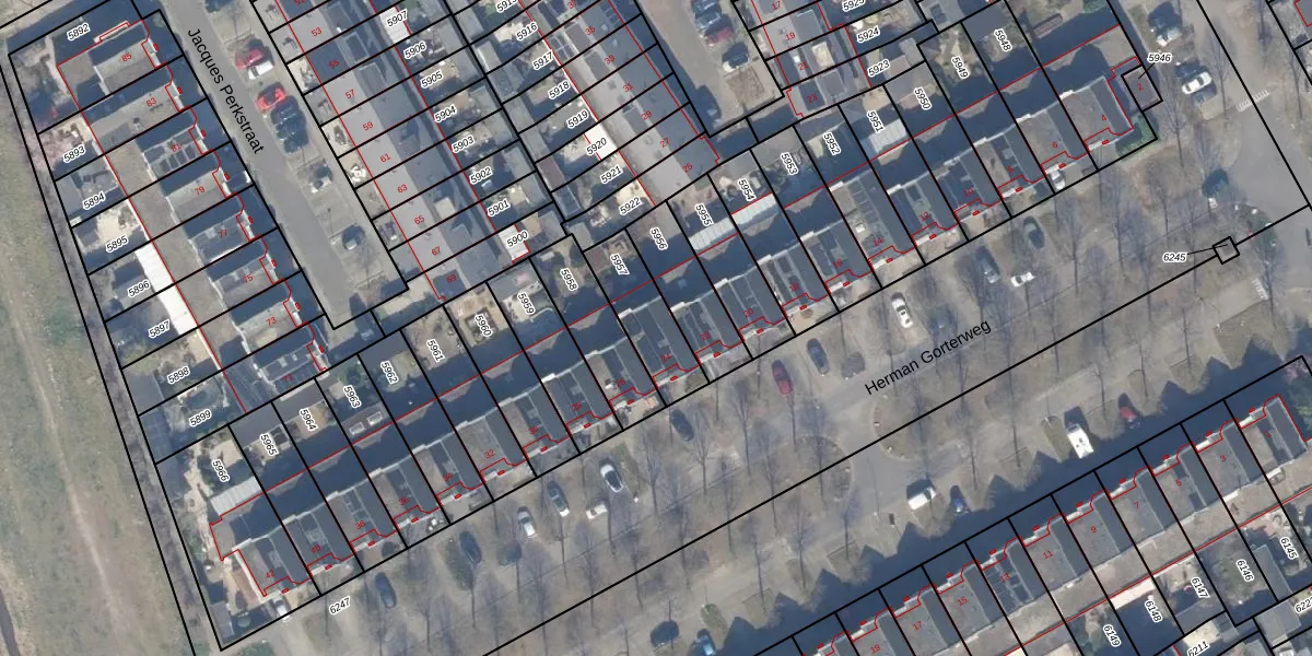 Herman Gorterweg 24 is gelegen op kadastraal perceel AMR04Q5957. Deze kadastrale aanduiding is uniek en wordt gebruikt door het Kadaster om eigendomsrechten en andere zakelijke rechten vast te leggen. Het perceel maakt onderdeel uit van de kadastrale gemeente Almere.