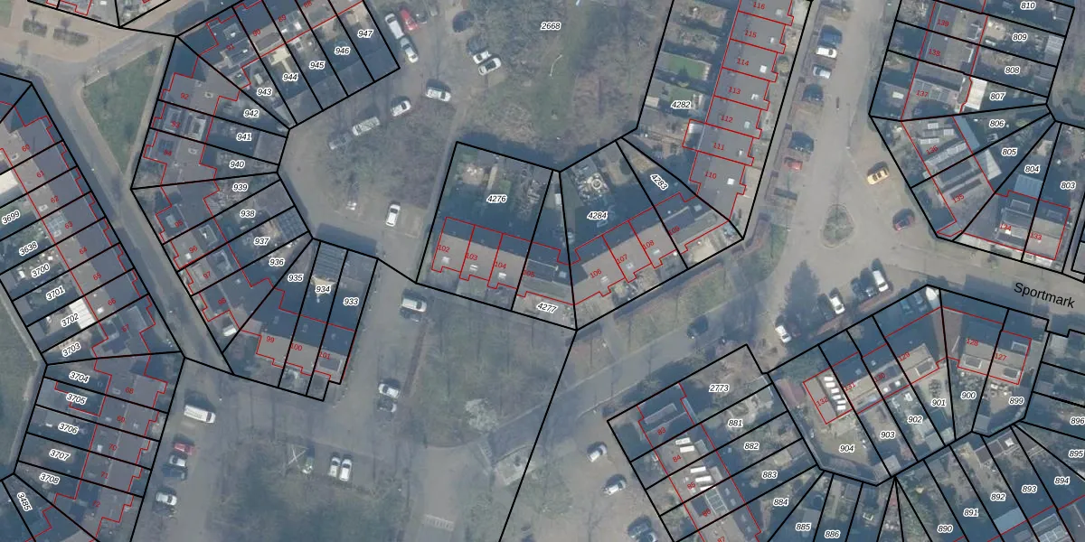 Gebruik de zoekbalk of klik op een perceel voor informatie over de adressen binnen dit perceel.