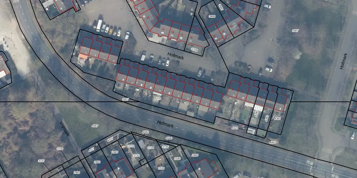 Het perceel waarop Hofmark 11 staat heeft een oppervlakte van 2279 m². Dit is een zeer groot perceel. De perceeloppervlakte wordt geregistreerd door het Kadaster. Gedetailleerde informatie over de maten van dit perceel kunt u vinden in het rapport Kadastrale kaart met maatvoering van Hofmark 11.
