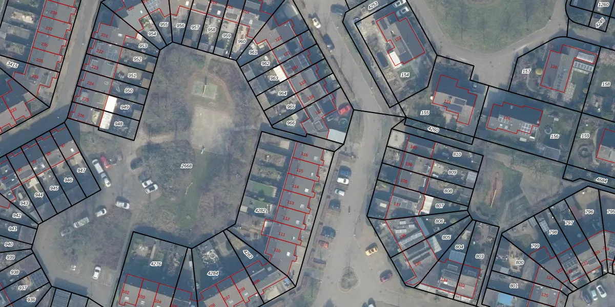 Het perceel waarop Hofmark 116 staat heeft een oppervlakte van 976 m². Dit is een groot perceel. De perceeloppervlakte wordt geregistreerd door het Kadaster. Gedetailleerde informatie over de maten van dit perceel kunt u vinden in het rapport Kadastrale kaart met maatvoering van Hofmark 116.