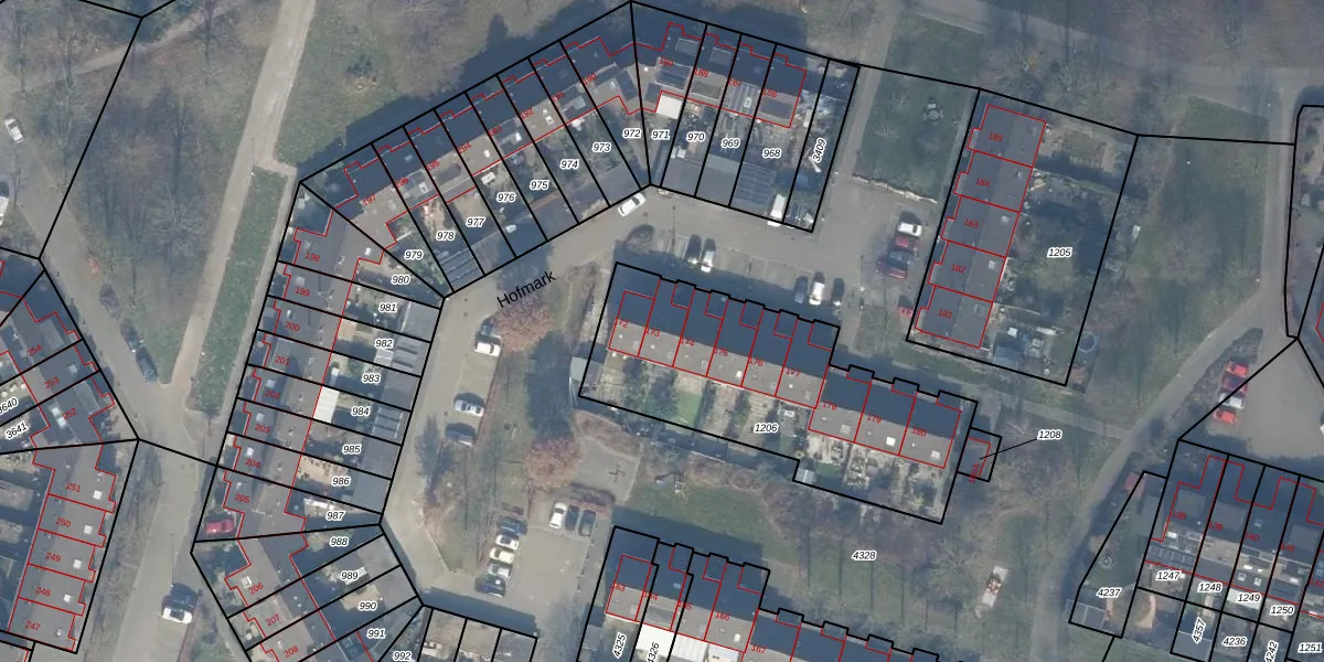 Het perceel waarop Hofmark 173 staat heeft een oppervlakte van 1165 m². Dit is een zeer groot perceel. De perceeloppervlakte wordt geregistreerd door het Kadaster. Gedetailleerde informatie over de maten van dit perceel kunt u vinden in het rapport Kadastrale kaart met maatvoering van Hofmark 173.