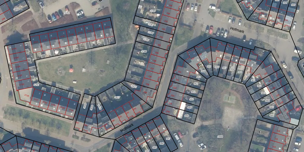 Het perceel waarop Hofmark 236 staat heeft een oppervlakte van 613 m². Dit is een groot perceel. De perceeloppervlakte wordt geregistreerd door het Kadaster. Gedetailleerde informatie over de maten van dit perceel kunt u vinden in het rapport Kadastrale kaart met maatvoering van Hofmark 236.