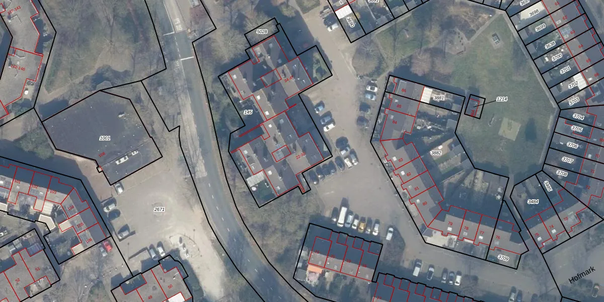 Het perceel waarop Hofmark 27 staat heeft een oppervlakte van 1343 m². Dit is een zeer groot perceel. De perceeloppervlakte wordt geregistreerd door het Kadaster. Gedetailleerde informatie over de maten van dit perceel kunt u vinden in het rapport Kadastrale kaart met maatvoering van Hofmark 27.