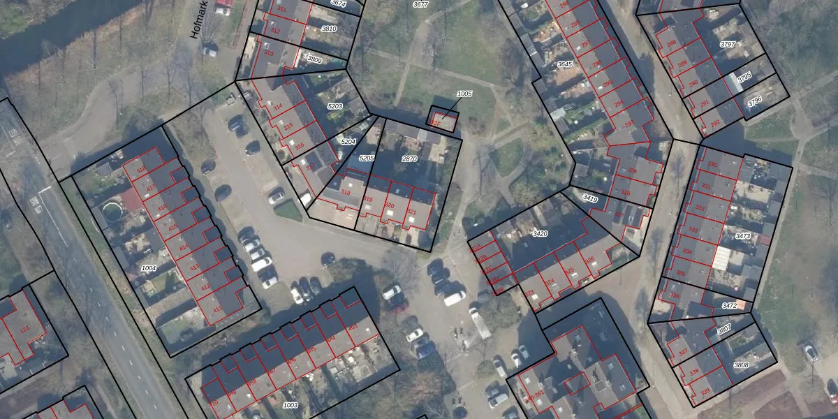 Het perceel waarop Hofmark 321 staat heeft een oppervlakte van 527 m². Dit is een groot perceel. De perceeloppervlakte wordt geregistreerd door het Kadaster. Gedetailleerde informatie over de maten van dit perceel kunt u vinden in het rapport Kadastrale kaart met maatvoering van Hofmark 321.