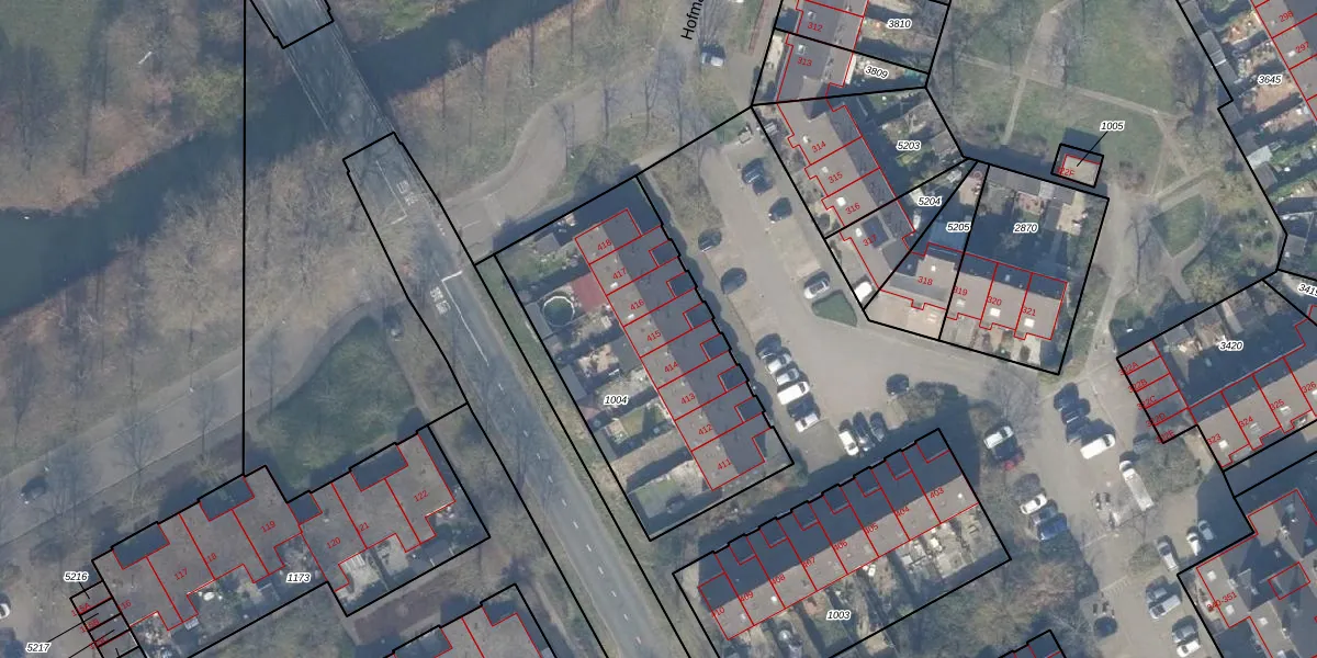 Het perceel waarop Hofmark 415 staat heeft een oppervlakte van 1226 m². Dit is een zeer groot perceel. De perceeloppervlakte wordt geregistreerd door het Kadaster. Gedetailleerde informatie over de maten van dit perceel kunt u vinden in het rapport Kadastrale kaart met maatvoering van Hofmark 415.