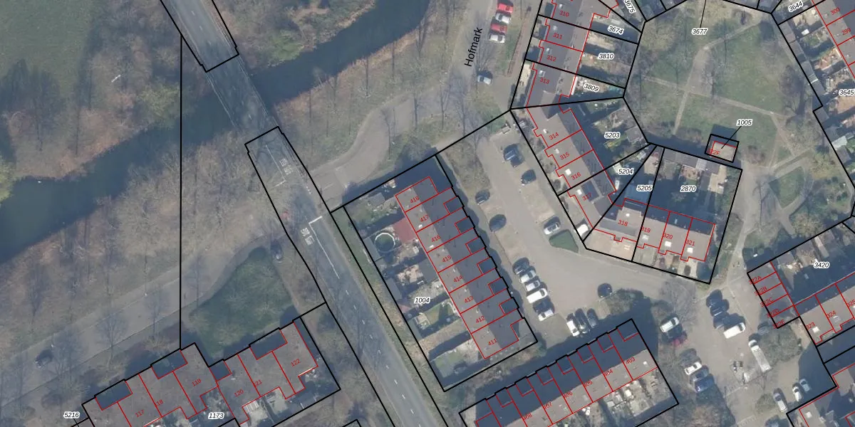 Het perceel waarop Hofmark 417 staat heeft een oppervlakte van 1226 m². Dit is een zeer groot perceel. De perceeloppervlakte wordt geregistreerd door het Kadaster. Gedetailleerde informatie over de maten van dit perceel kunt u vinden in het rapport Kadastrale kaart met maatvoering van Hofmark 417.