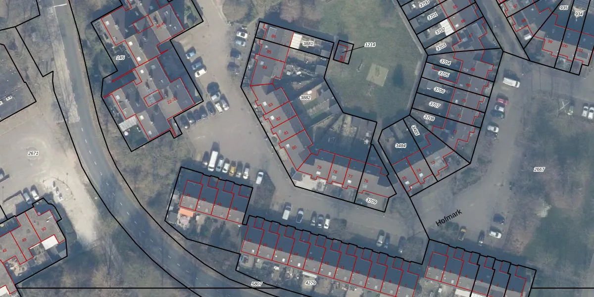 Het perceel waarop Hofmark 80 staat heeft een oppervlakte van 1442 m². Dit is een zeer groot perceel. De perceeloppervlakte wordt geregistreerd door het Kadaster. Gedetailleerde informatie over de maten van dit perceel kunt u vinden in het rapport Kadastrale kaart met maatvoering van Hofmark 80.