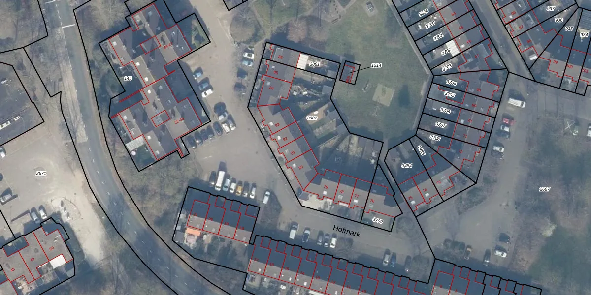 Het perceel waarop Hofmark 81 staat heeft een oppervlakte van 1442 m². Dit is een zeer groot perceel. De perceeloppervlakte wordt geregistreerd door het Kadaster. Gedetailleerde informatie over de maten van dit perceel kunt u vinden in het rapport Kadastrale kaart met maatvoering van Hofmark 81.