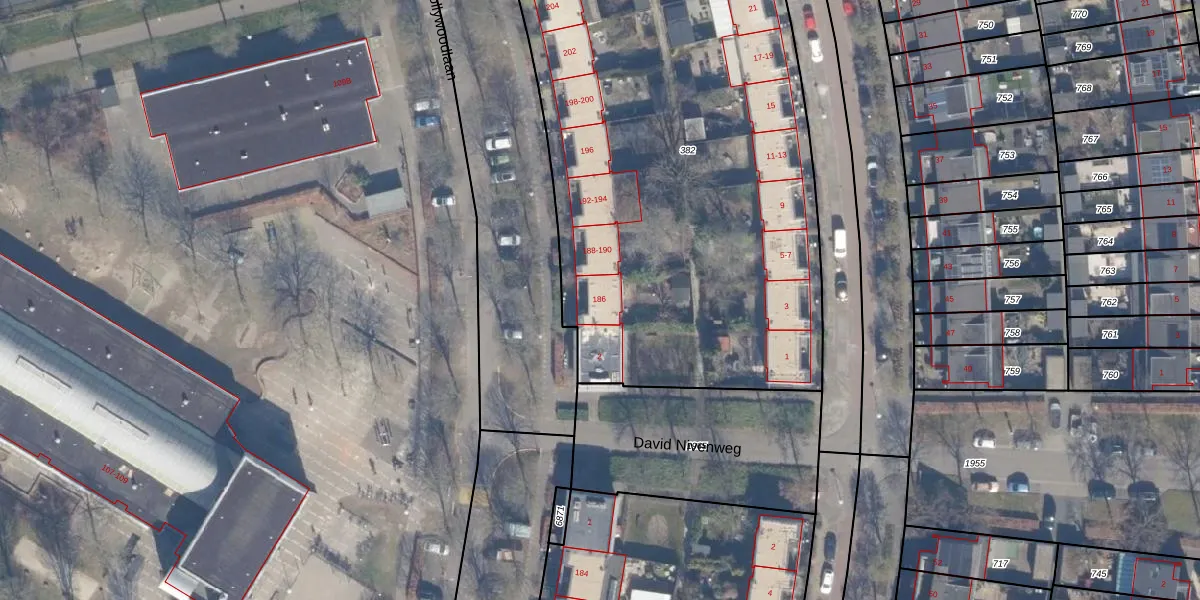 Het perceel waarop Hollywoodlaan 186 staat heeft een oppervlakte van 3127 m². Dit is een zeer groot perceel. De perceeloppervlakte wordt geregistreerd door het Kadaster. Gedetailleerde informatie over de maten van dit perceel kunt u vinden in het rapport Kadastrale kaart met maatvoering van Hollywoodlaan 186.
