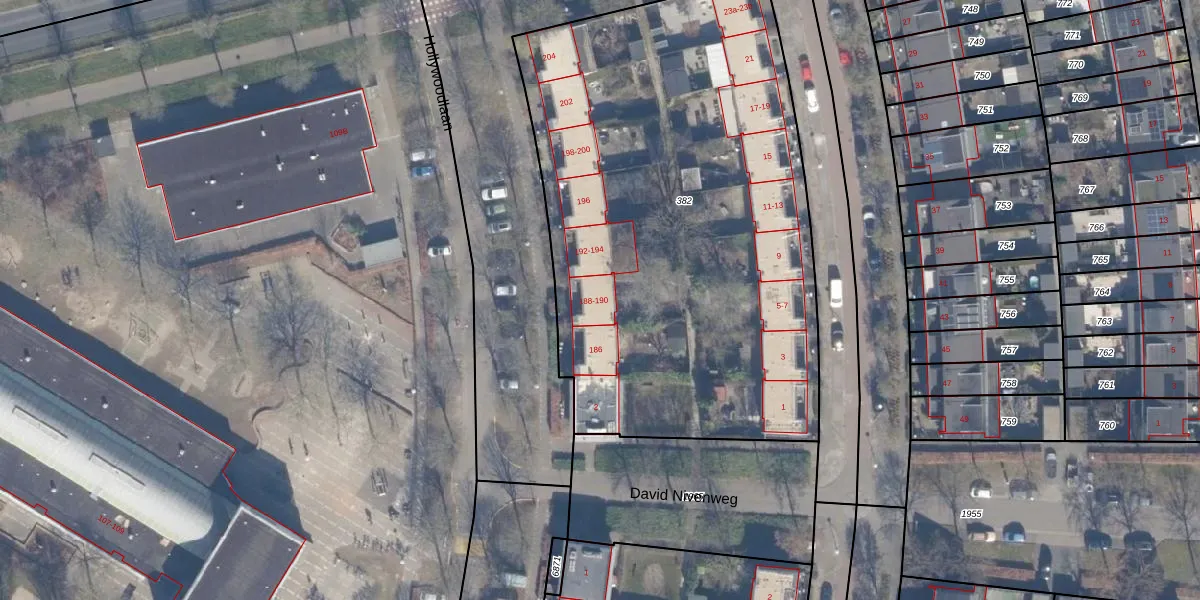 Het perceel waarop Hollywoodlaan 190 staat heeft een oppervlakte van 3127 m². Dit is een zeer groot perceel. De perceeloppervlakte wordt geregistreerd door het Kadaster. Gedetailleerde informatie over de maten van dit perceel kunt u vinden in het rapport Kadastrale kaart met maatvoering van Hollywoodlaan 190.