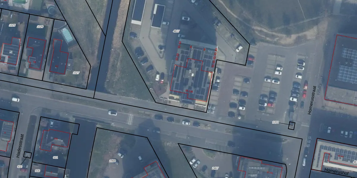 Homeruslaan 161 is gelegen op kadastraal perceel AMR04W4817. Deze kadastrale aanduiding is uniek en wordt gebruikt door het Kadaster om eigendomsrechten en andere zakelijke rechten vast te leggen. Het perceel maakt onderdeel uit van de kadastrale gemeente Almere.