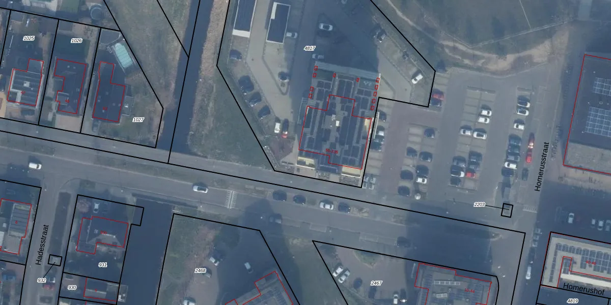 Het perceel waarop Homeruslaan 177 staat heeft een oppervlakte van 3997 m². Dit is een zeer groot perceel. De perceeloppervlakte wordt geregistreerd door het Kadaster. Gedetailleerde informatie over de maten van dit perceel kunt u vinden in het rapport Kadastrale kaart met maatvoering van Homeruslaan 177.