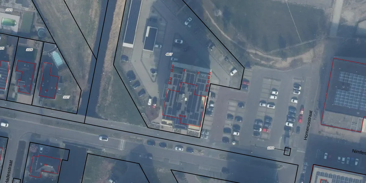 Het perceel waarop Homeruslaan 181 staat heeft een oppervlakte van 3997 m². Dit is een zeer groot perceel. De perceeloppervlakte wordt geregistreerd door het Kadaster. Gedetailleerde informatie over de maten van dit perceel kunt u vinden in het rapport Kadastrale kaart met maatvoering van Homeruslaan 181.