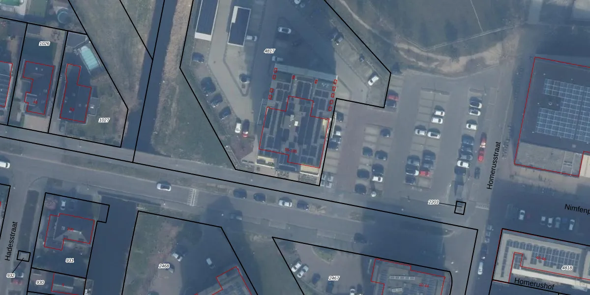 Het perceel waarop Homeruslaan 191 staat heeft een oppervlakte van 3997 m². Dit is een zeer groot perceel. De perceeloppervlakte wordt geregistreerd door het Kadaster. Gedetailleerde informatie over de maten van dit perceel kunt u vinden in het rapport Kadastrale kaart met maatvoering van Homeruslaan 191.
