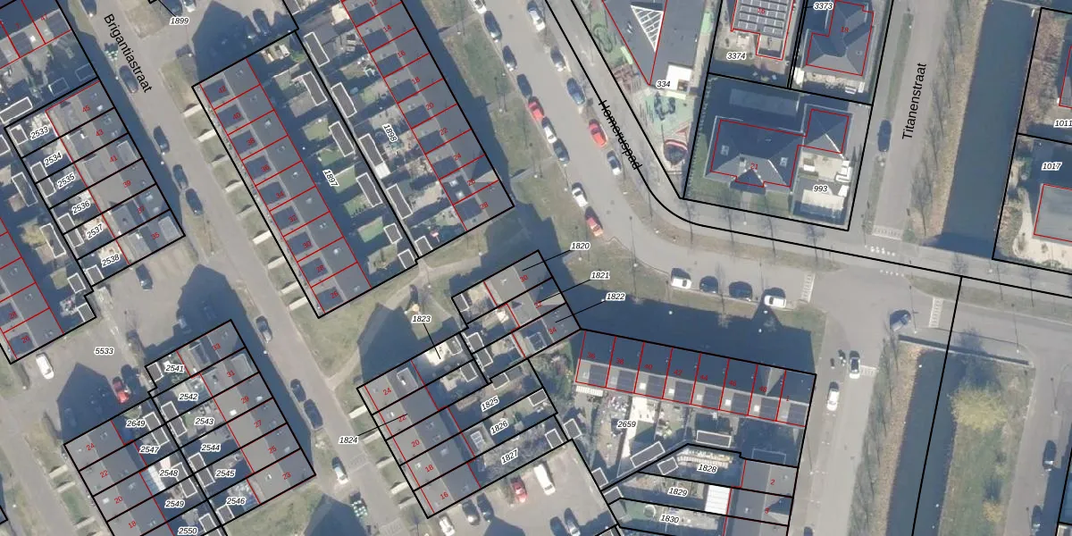 Homeruslaan 30 is gelegen op kadastraal perceel AMR04W1820. Deze kadastrale aanduiding is uniek en wordt gebruikt door het Kadaster om eigendomsrechten en andere zakelijke rechten vast te leggen. Het perceel maakt onderdeel uit van de kadastrale gemeente Almere.