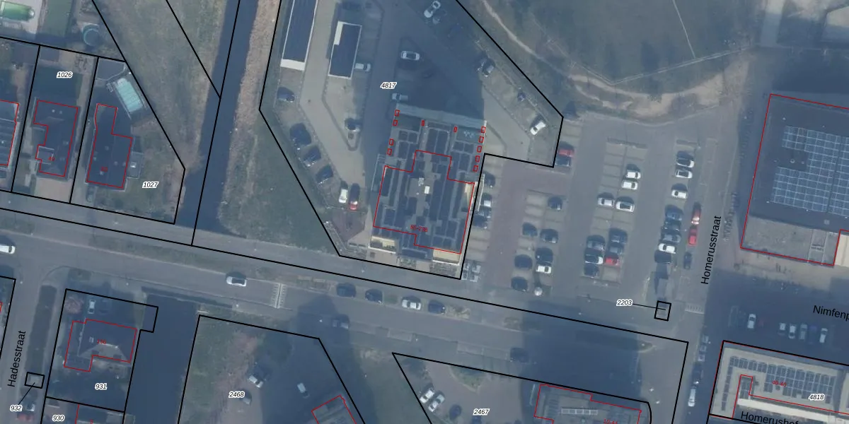 Het perceel waarop Homeruslaan 65 staat heeft een oppervlakte van 3997 m². Dit is een zeer groot perceel. De perceeloppervlakte wordt geregistreerd door het Kadaster. Gedetailleerde informatie over de maten van dit perceel kunt u vinden in het rapport Kadastrale kaart met maatvoering van Homeruslaan 65.
