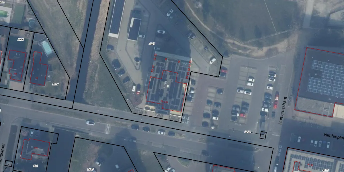 Het perceel waarop Homeruslaan 77 staat heeft een oppervlakte van 3997 m². Dit is een zeer groot perceel. De perceeloppervlakte wordt geregistreerd door het Kadaster. Gedetailleerde informatie over de maten van dit perceel kunt u vinden in het rapport Kadastrale kaart met maatvoering van Homeruslaan 77.