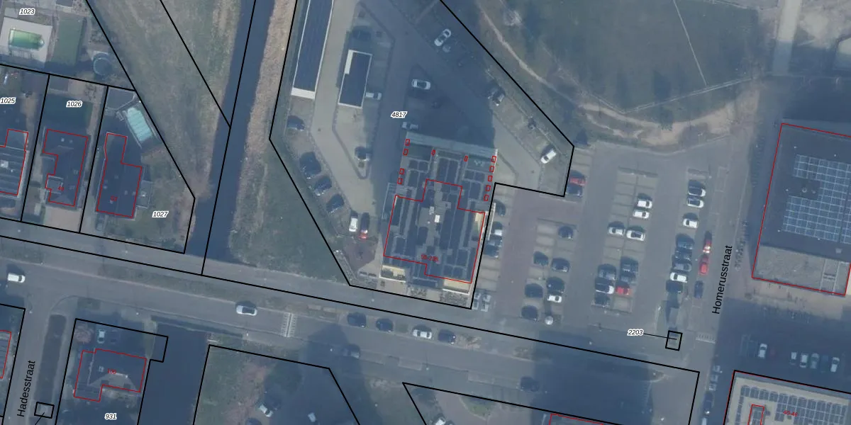 Het perceel waarop Homeruslaan 83 staat heeft een oppervlakte van 3997 m². Dit is een zeer groot perceel. De perceeloppervlakte wordt geregistreerd door het Kadaster. Gedetailleerde informatie over de maten van dit perceel kunt u vinden in het rapport Kadastrale kaart met maatvoering van Homeruslaan 83.