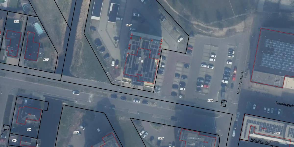 Het perceel waarop Homeruslaan 95 staat heeft een oppervlakte van 3997 m². Dit is een zeer groot perceel. De perceeloppervlakte wordt geregistreerd door het Kadaster. Gedetailleerde informatie over de maten van dit perceel kunt u vinden in het rapport Kadastrale kaart met maatvoering van Homeruslaan 95.