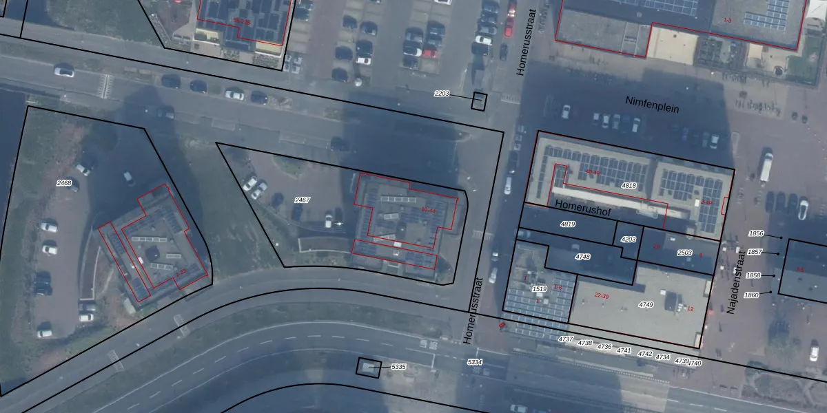 Homerusstraat 10 is gelegen op kadastraal perceel AMR04W2467. Deze kadastrale aanduiding is uniek en wordt gebruikt door het Kadaster om eigendomsrechten en andere zakelijke rechten vast te leggen. Het perceel maakt onderdeel uit van de kadastrale gemeente Almere.