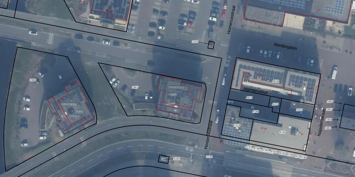 Homerusstraat 12 is gelegen op kadastraal perceel AMR04W2467. Deze kadastrale aanduiding is uniek en wordt gebruikt door het Kadaster om eigendomsrechten en andere zakelijke rechten vast te leggen. Het perceel maakt onderdeel uit van de kadastrale gemeente Almere.