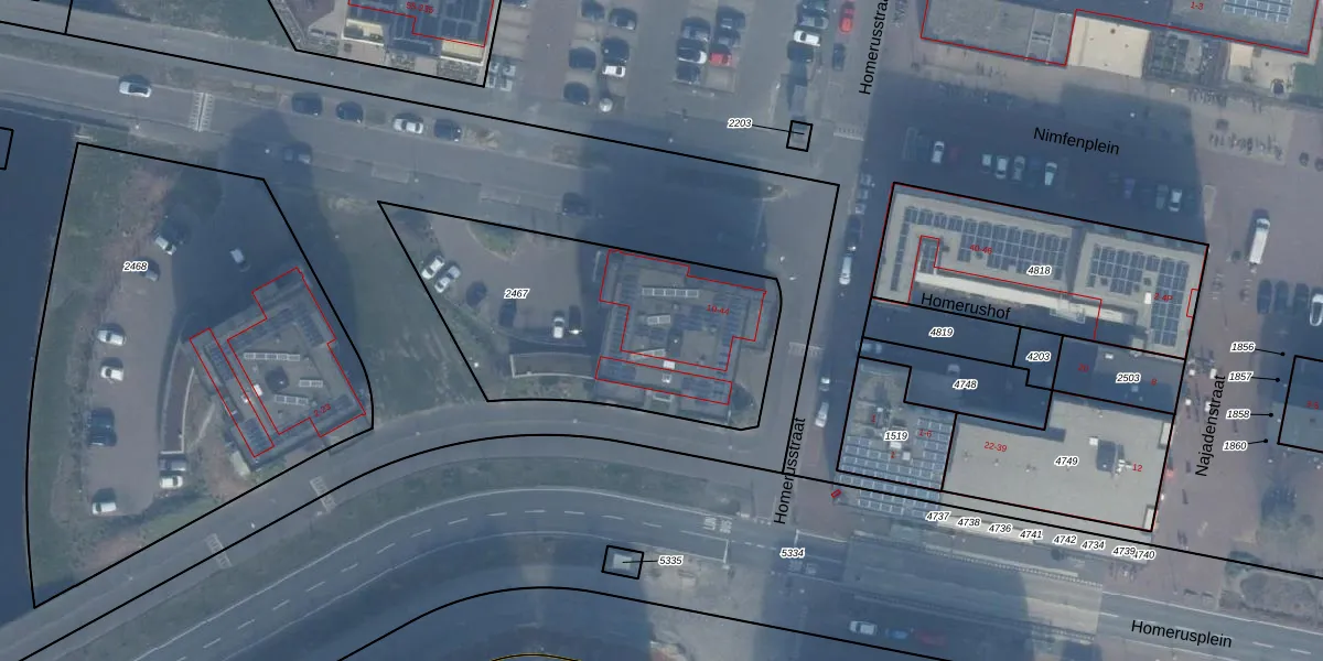 Homerusstraat 20 is gelegen op kadastraal perceel AMR04W2467. Deze kadastrale aanduiding is uniek en wordt gebruikt door het Kadaster om eigendomsrechten en andere zakelijke rechten vast te leggen. Het perceel maakt onderdeel uit van de kadastrale gemeente Almere.