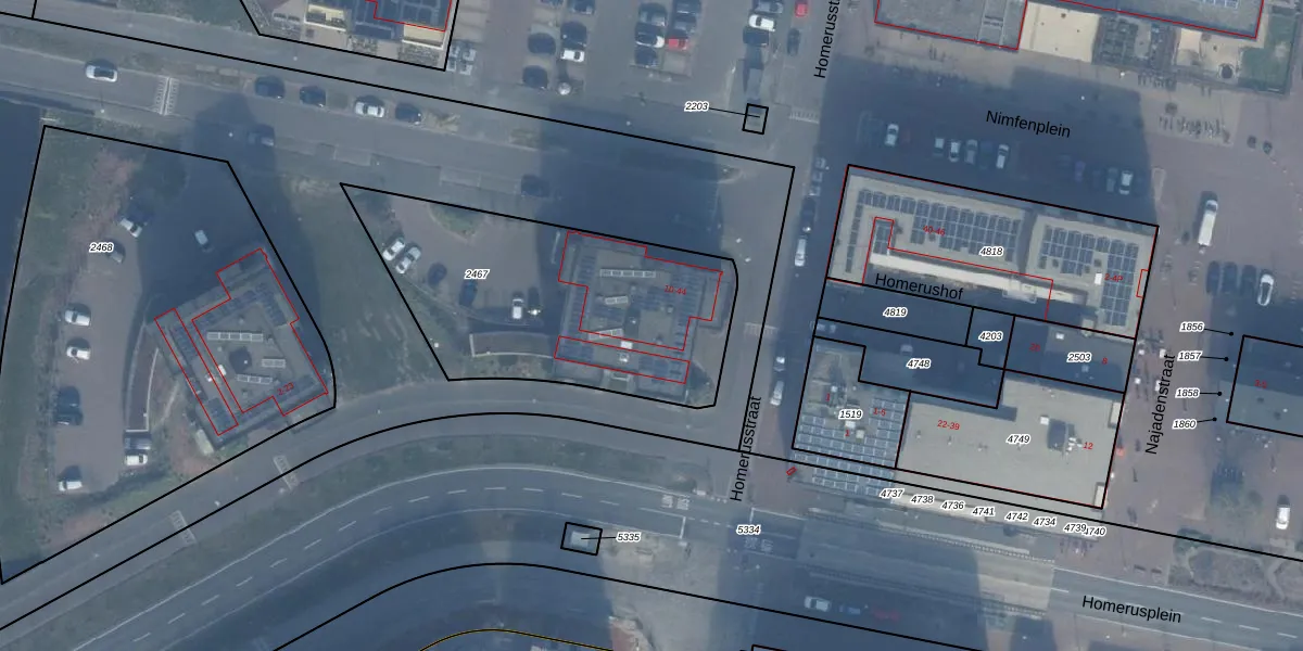 Homerusstraat 22 is gelegen op kadastraal perceel AMR04W2467. Deze kadastrale aanduiding is uniek en wordt gebruikt door het Kadaster om eigendomsrechten en andere zakelijke rechten vast te leggen. Het perceel maakt onderdeel uit van de kadastrale gemeente Almere.