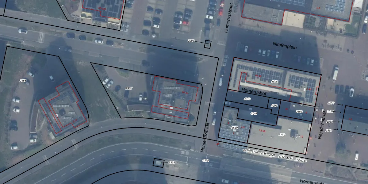 Homerusstraat 24 is gelegen op kadastraal perceel AMR04W2467. Deze kadastrale aanduiding is uniek en wordt gebruikt door het Kadaster om eigendomsrechten en andere zakelijke rechten vast te leggen. Het perceel maakt onderdeel uit van de kadastrale gemeente Almere.