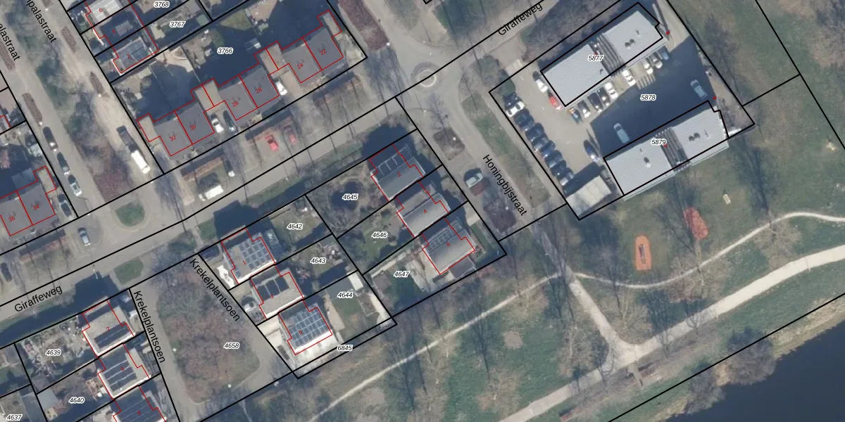 Het perceel waarop Honingbijstraat 4 staat heeft een oppervlakte van 323 m². Dit is een groot perceel. De perceeloppervlakte wordt geregistreerd door het Kadaster. Gedetailleerde informatie over de maten van dit perceel kunt u vinden in het rapport Kadastrale kaart met maatvoering van Honingbijstraat 4.