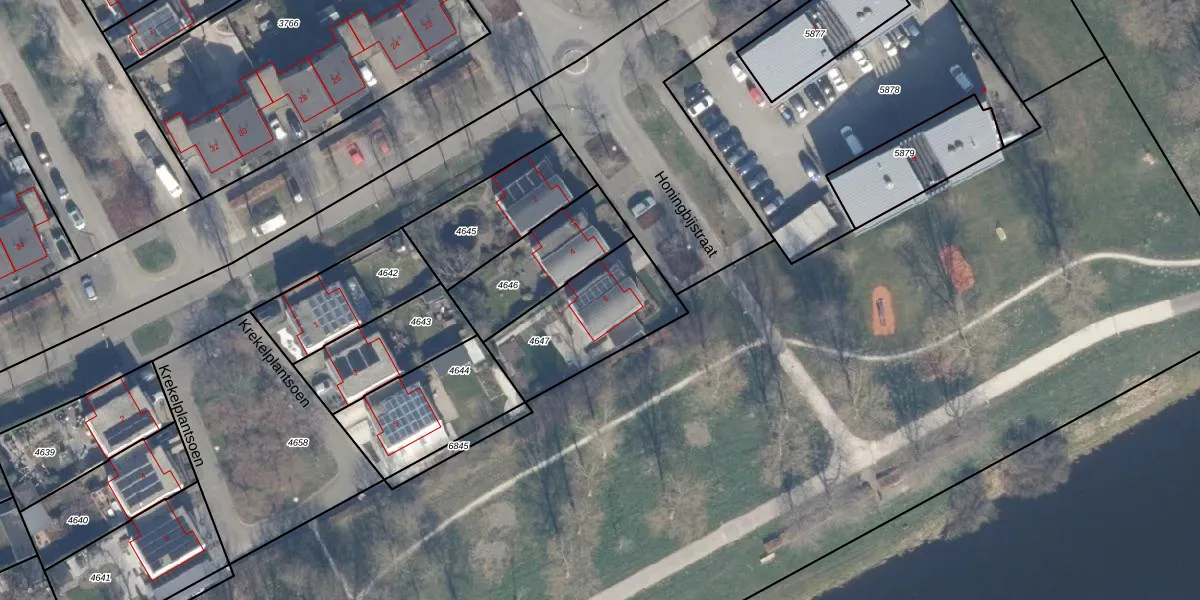 Het perceel waarop Honingbijstraat 6 staat heeft een oppervlakte van 430 m². Dit is een groot perceel. De perceeloppervlakte wordt geregistreerd door het Kadaster. Gedetailleerde informatie over de maten van dit perceel kunt u vinden in het rapport Kadastrale kaart met maatvoering van Honingbijstraat 6.