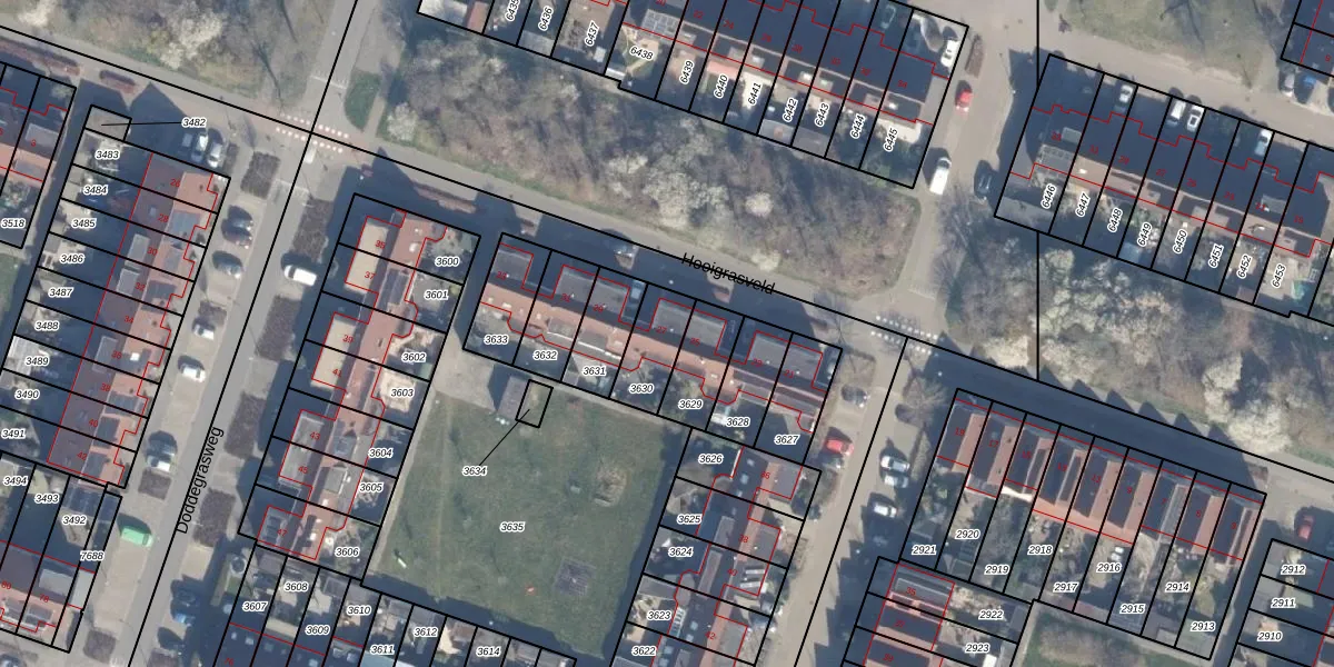 Hooigrasveld 27 is gelegen op kadastraal perceel AMR04O3630. Deze kadastrale aanduiding is uniek en wordt gebruikt door het Kadaster om eigendomsrechten en andere zakelijke rechten vast te leggen. Het perceel maakt onderdeel uit van de kadastrale gemeente Almere.