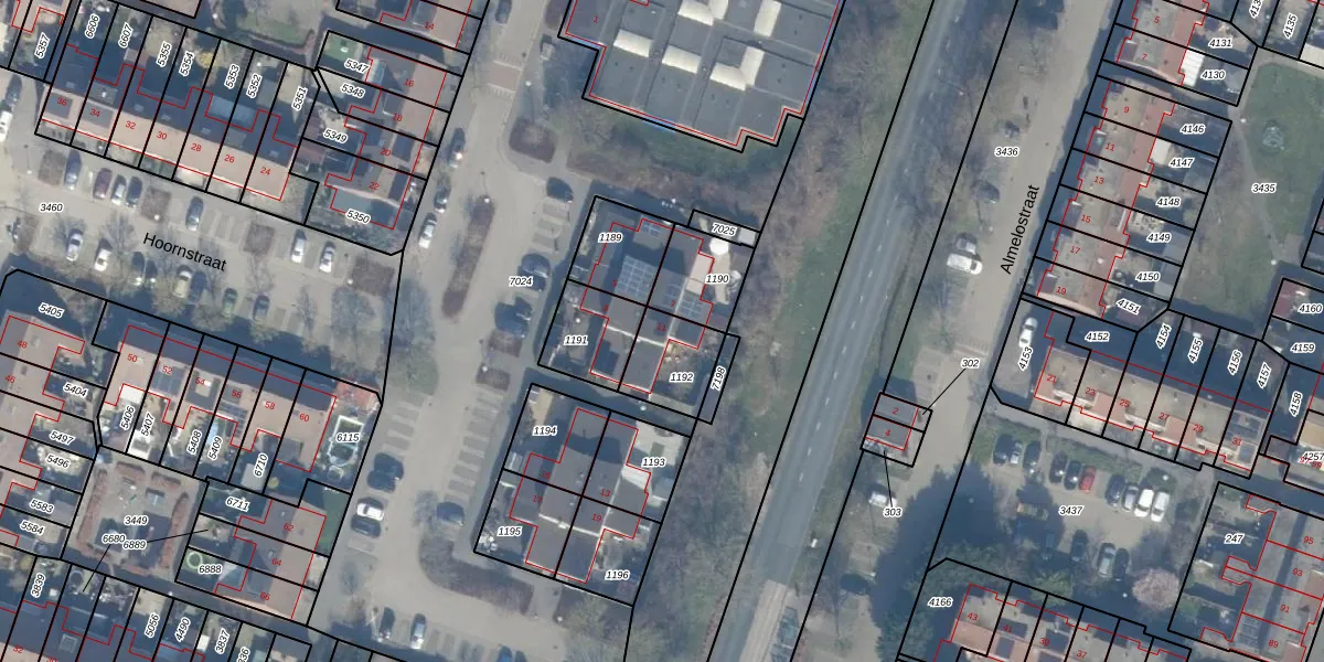 Het perceel waarop Hoornstraat 11 staat heeft een oppervlakte van 173 m². Dit is een middelgroot perceel. De perceeloppervlakte wordt geregistreerd door het Kadaster. Gedetailleerde informatie over de maten van dit perceel kunt u vinden in het rapport Kadastrale kaart met maatvoering van Hoornstraat 11.